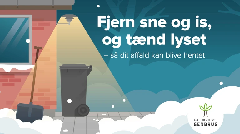 - Sørg for at der er en 1 meter bred sti fri fra sne og is fra skraldebilens holdeplads hen til affaldsbeholderne